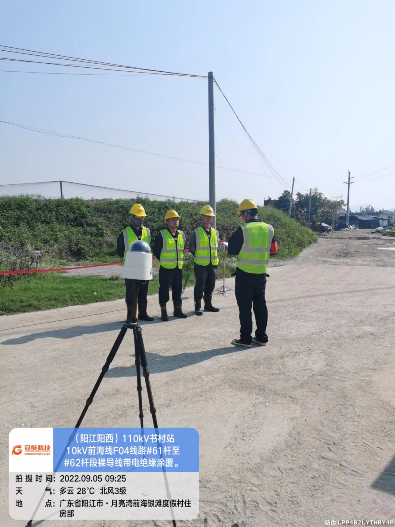 陽江陽西110kV書村站10kV前海線F04線路#61桿至#62桿段裸導(dǎo)線帶電絕緣涂覆及交底。