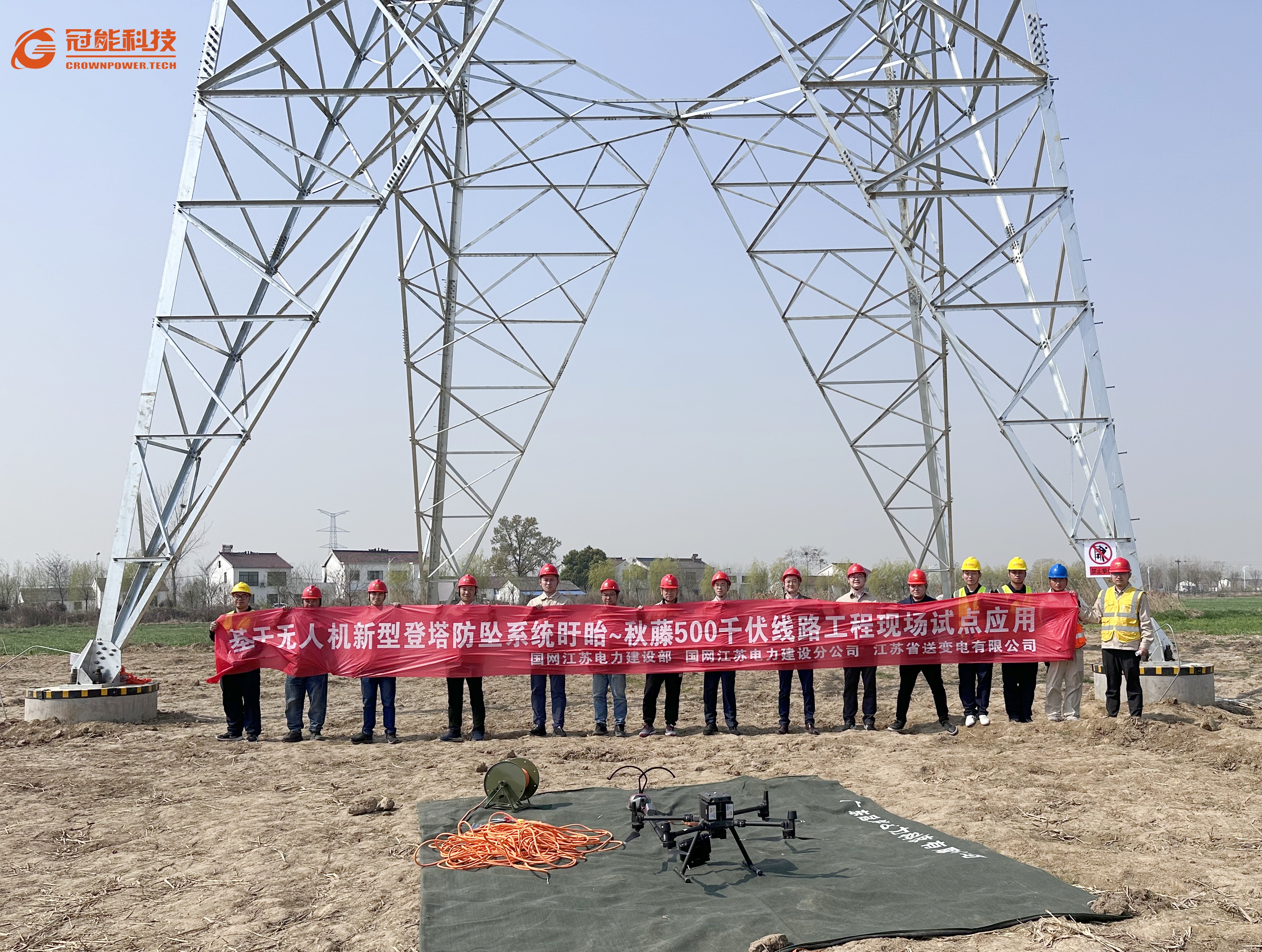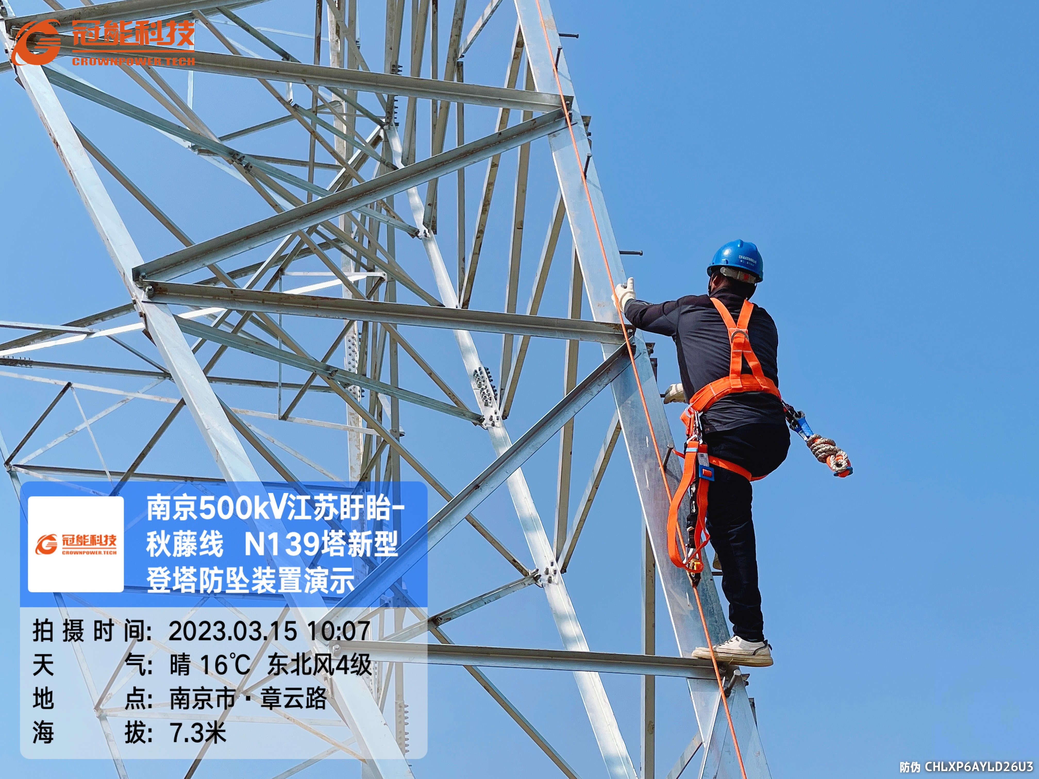 3月15號,冠能科技公司受邀國網(wǎng)江蘇電力工程咨詢公司在盱眙~秋藤500千伏線路工程現(xiàn)場進行新型登塔防墜落裝置試點應用。