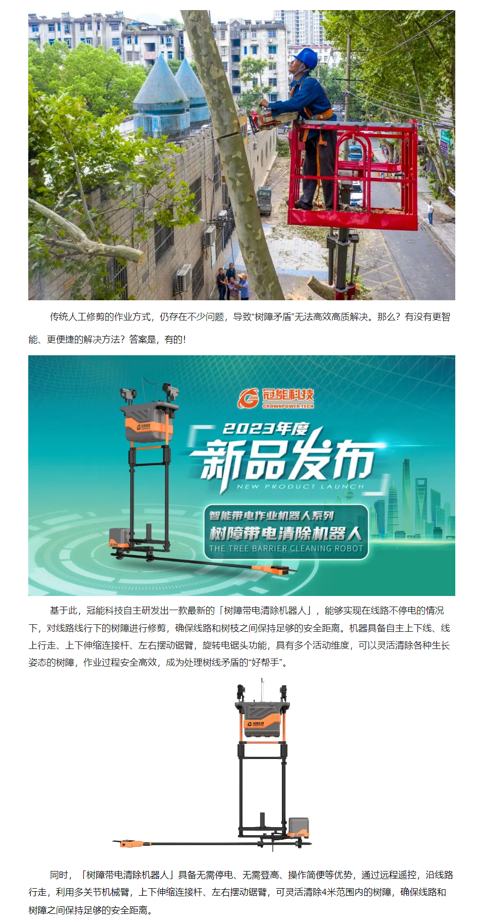 【新品發(fā)布】冠能科技重磅推出「樹障帶電清除機器人」