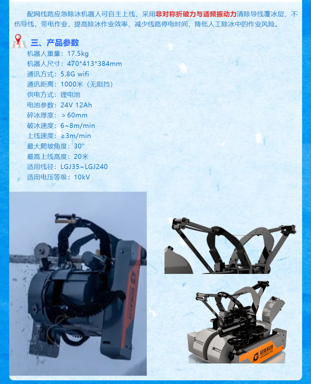 新品發(fā)布 | 配網(wǎng)線路應(yīng)急除冰機(jī)器人