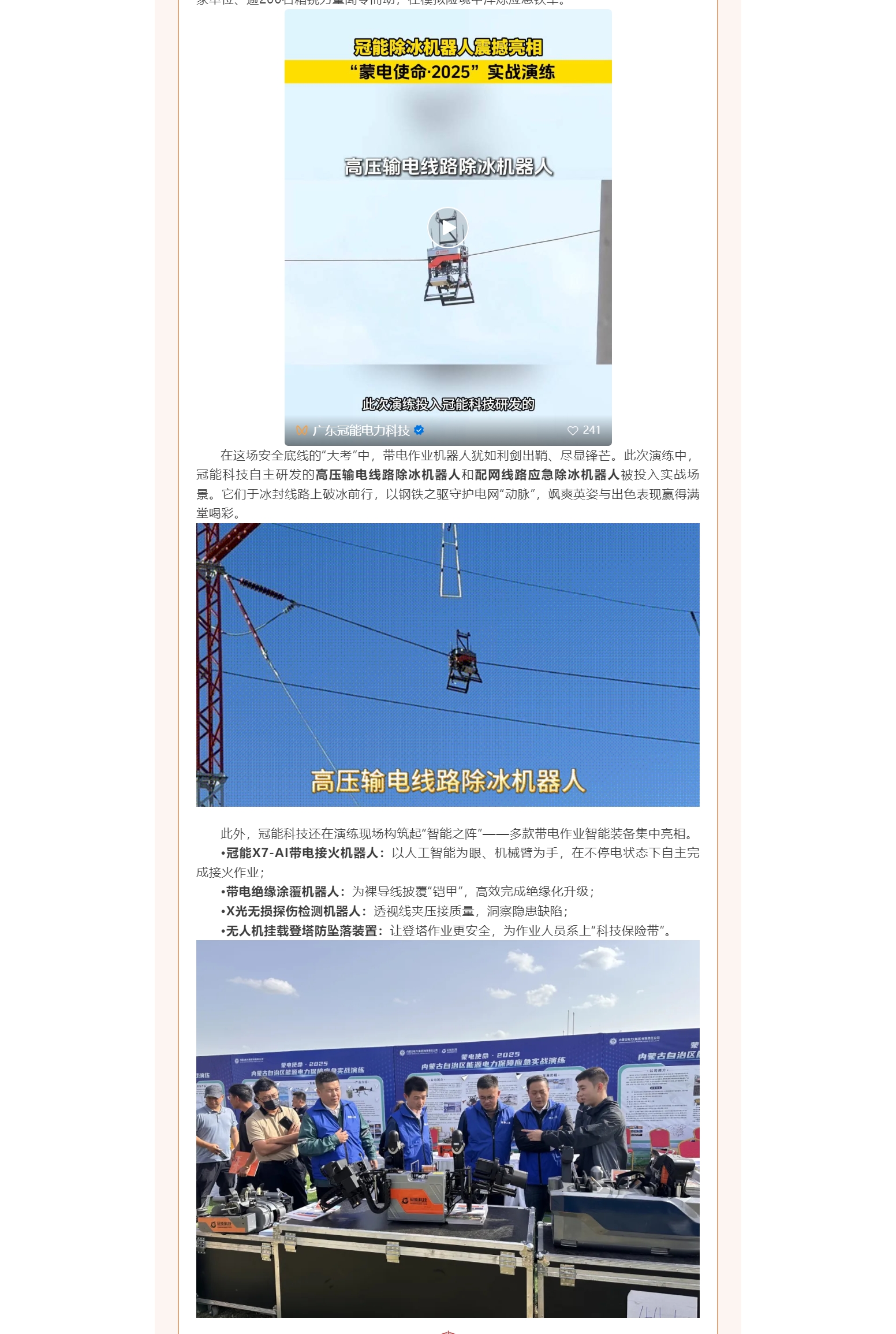 行業(yè)大考,冠能答卷:除冰“黑科技”閃耀“蒙電使命·2025”應(yīng)急實(shí)戰(zhàn)演練